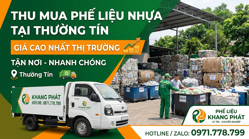 Phế liệu Khang Phát chuyên thu mua phế liệu nhựa tại Thường Tín giá cao, tận nơi. Báo giá nhanh, cân đo uy tín, thanh toán 100% trong ngày. Gọi 0971.778.799.